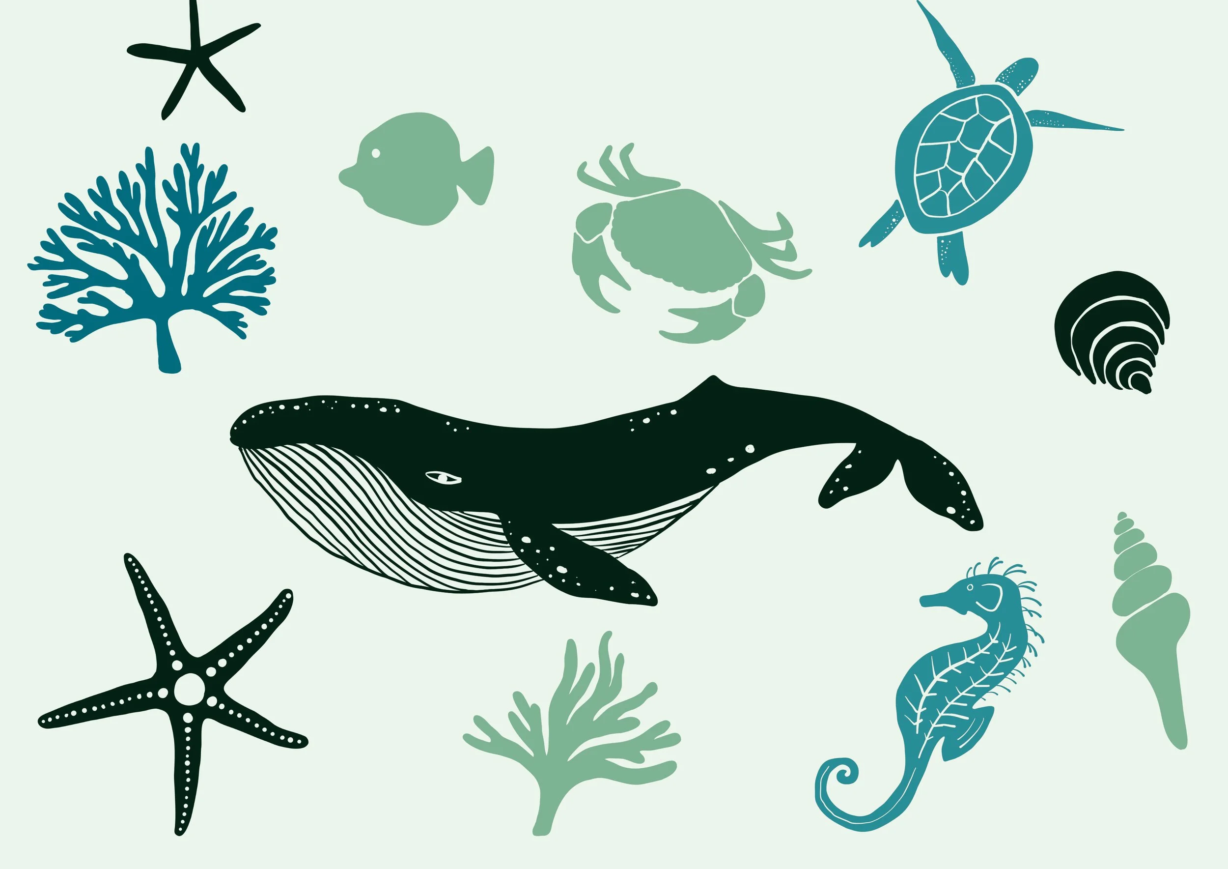 My sister is a Marine Biologist and so she selected the colour palette and the underwater sea theme.